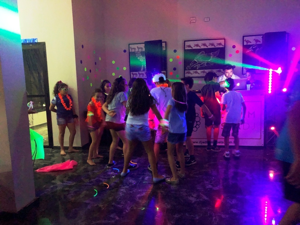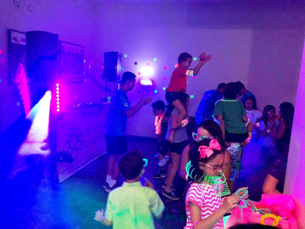 Com a decoração toda neon, a balada foi do jeitinho que ele sonhava!